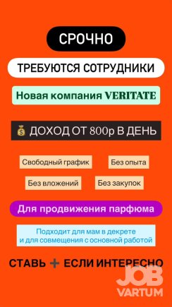 Ведение соцсетей, общение с клиентами Компания: Veritate Оформление заказов. - Ведение соцсетей. - Продвижение продукции Veritate. - Поиск клиентов. К...