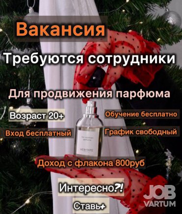 Желание работать и зарабатывать Компания: VERITATE Приглашаю к сотрудничеству девушек Для продажи и продвижения парфюма. *Подходит абсолютно всем: моло...