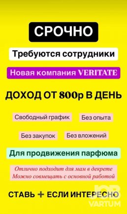 Требуются сотрудники девушки от ❗20 лет, в компанию Veritate для работы/подработки