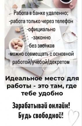 Консультировать клиентов Компания: банковские продукты Есть пару мест на удалённую работу! Без опыта — бесплатное обучение с нуля Поддержка и помощь 24/7 Зар...